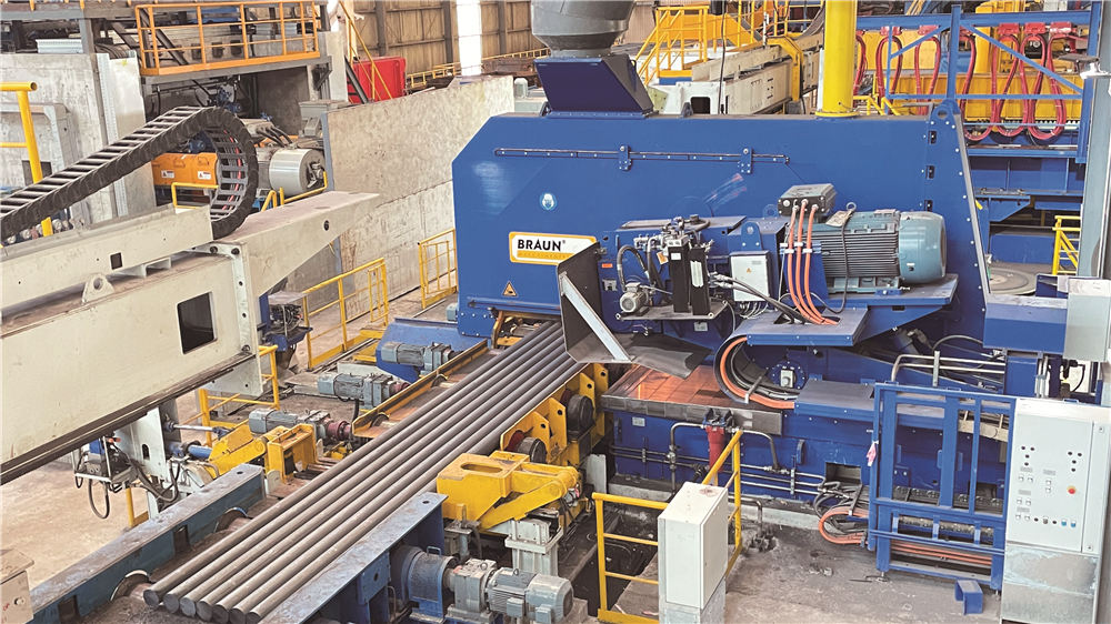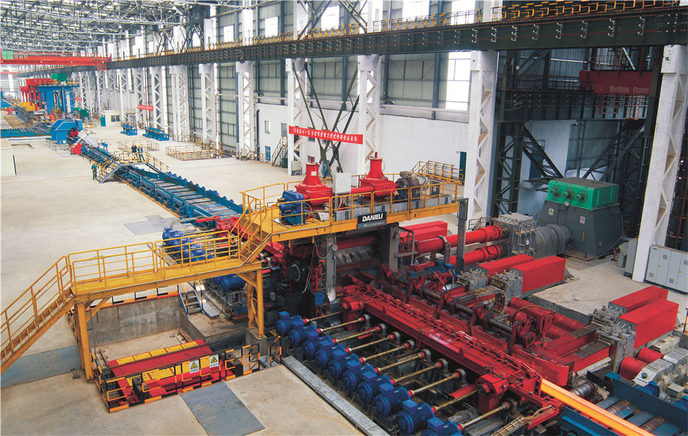 特殊鋼大棒材生產線總體工藝由意大利達涅利公司設計。加熱爐、開坯機、鋼坯火焰清理機、連軋機、飛剪、kocks減定徑軋機、組合鋸、砂輪鋸等關鍵核心設備和部分控制系統從法國斯坦因公司、意大利達涅利公司、美國L-TEC公司、德國kocks公司以及奧地利布朗公司引進;該生產線采用在線測徑技術、無損探傷技術、控軋控冷技術、在線火焰清理技術、熱裝熱送技術,?50mm~?160mm配備德國KOCKS減定徑軋機,可實現自由尺寸軋制。產品規格:圓鋼?50mm~?300mm;方鋼100mmx100mm~180mmx180mm;軋制用坯150mmx150mm~360mmx360mm。著力打造以軸承鋼、齒輪鋼、彈簧鋼、合金結構鋼、優質碳素結構鋼、非調質鋼、高壓鍋爐管鋼、錨鏈鋼等產品為主的特殊鋼生產基地,覆蓋汽車及工程機械、石油化工、風力發電、鐵路及軌道交通等行業。該生產線生產靈活,適應性強,產品精度高,組織性能穩定,鋸切質量高,技術裝備、產品質量及自動化水平均達到了國際先進水平。
